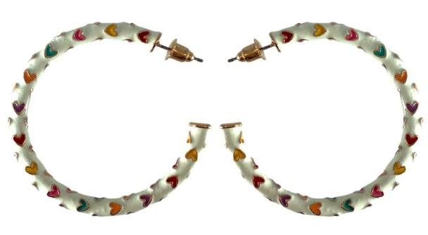 Our hoop earrings have the look of porcelain with pretty handpainted hearts!