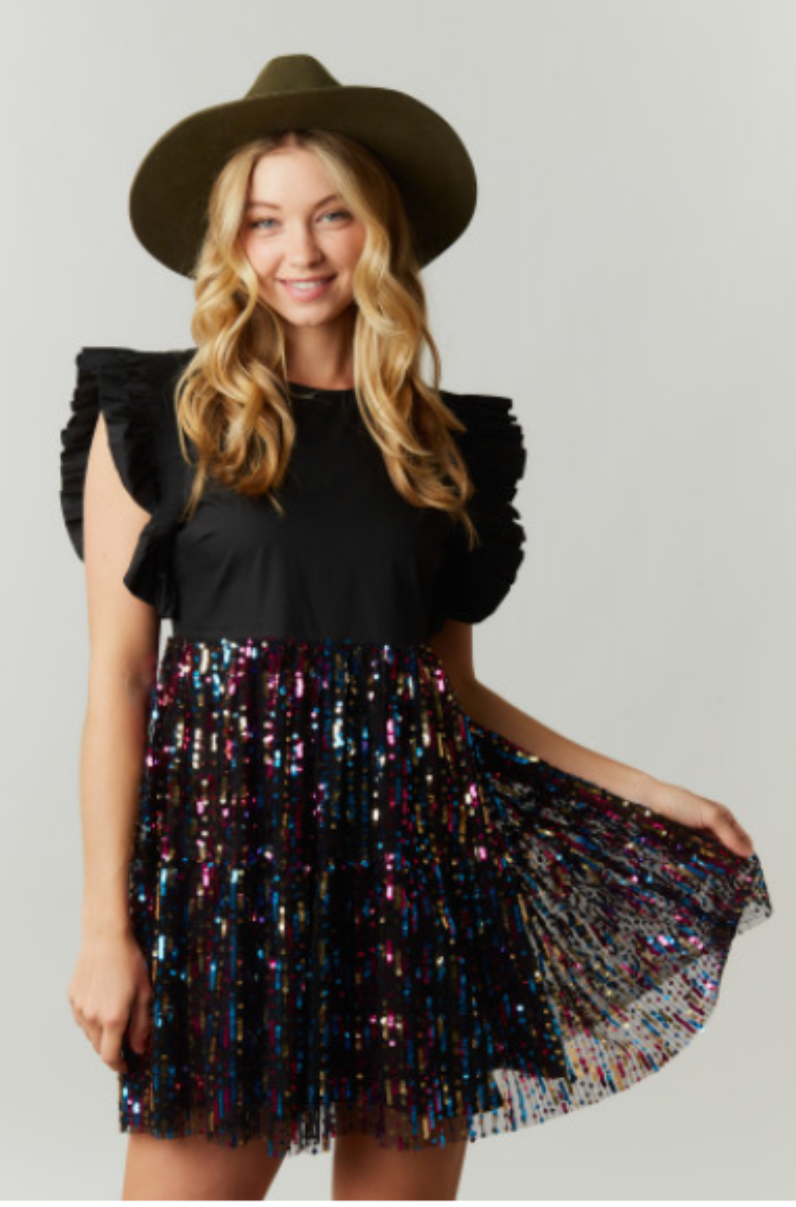 Sequin Color Block Mini Poplin Dress
